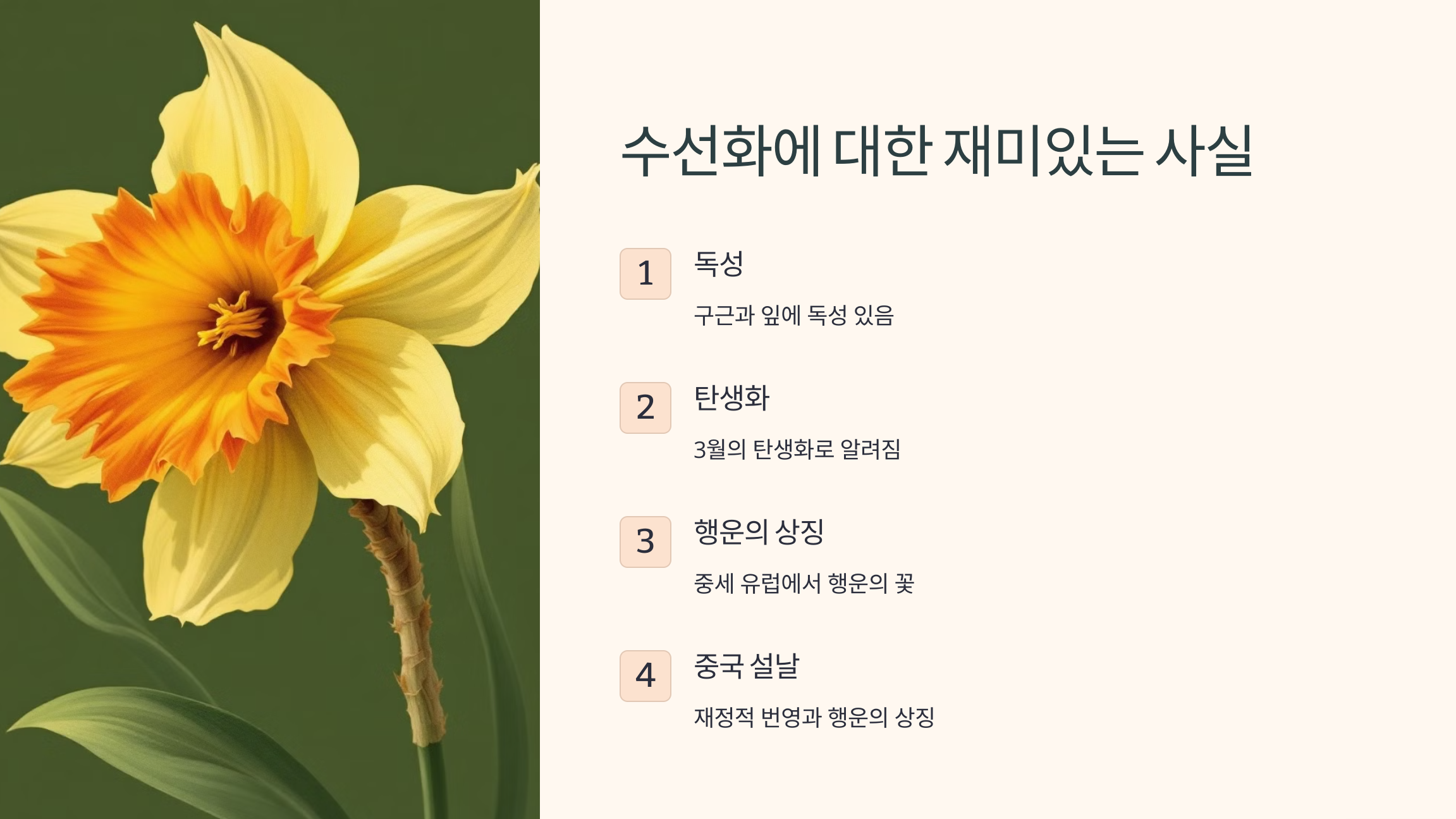 수선화에 대해 알고 계셨나요? 다음은 수선화에 대한 흥미로운 사실들입니다.