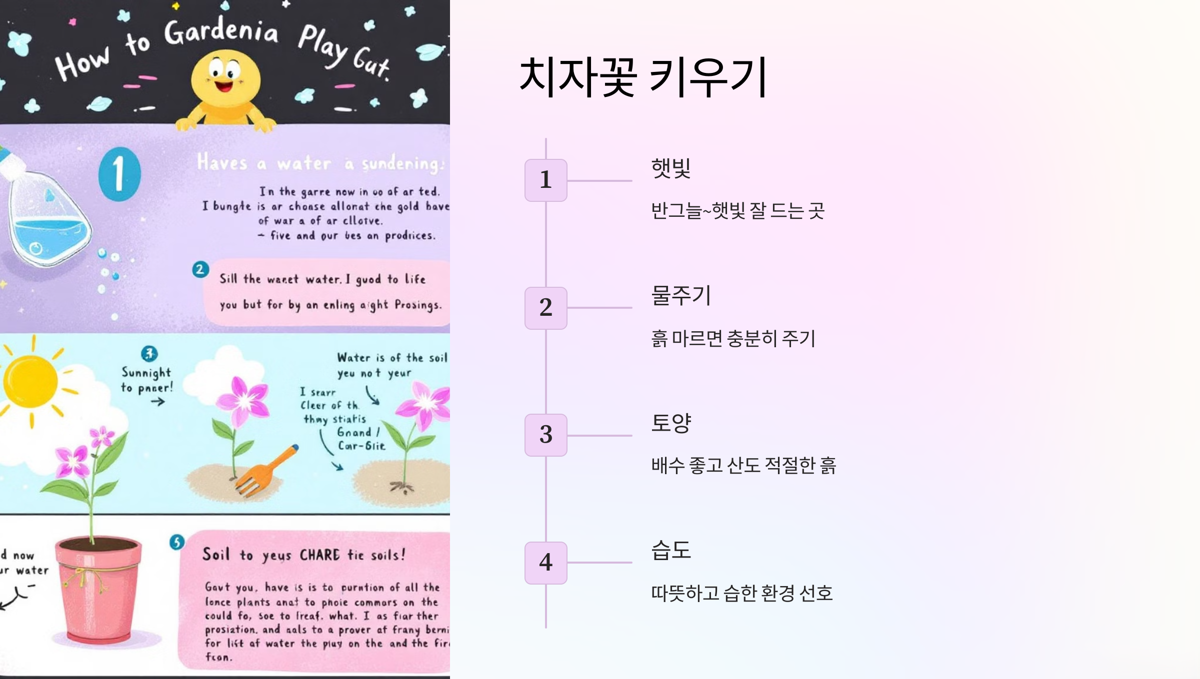 치자꽃을 집에서 키우려면 몇 가지 주의할 점이 있어요. 이 식물은 따뜻하고 습한 환경을 좋아하며, 햇빛을 적절히 받아야 건강하게 자랍니다. 또한, 토양의 산도를 적절히 유지하는 것도 중요하죠.