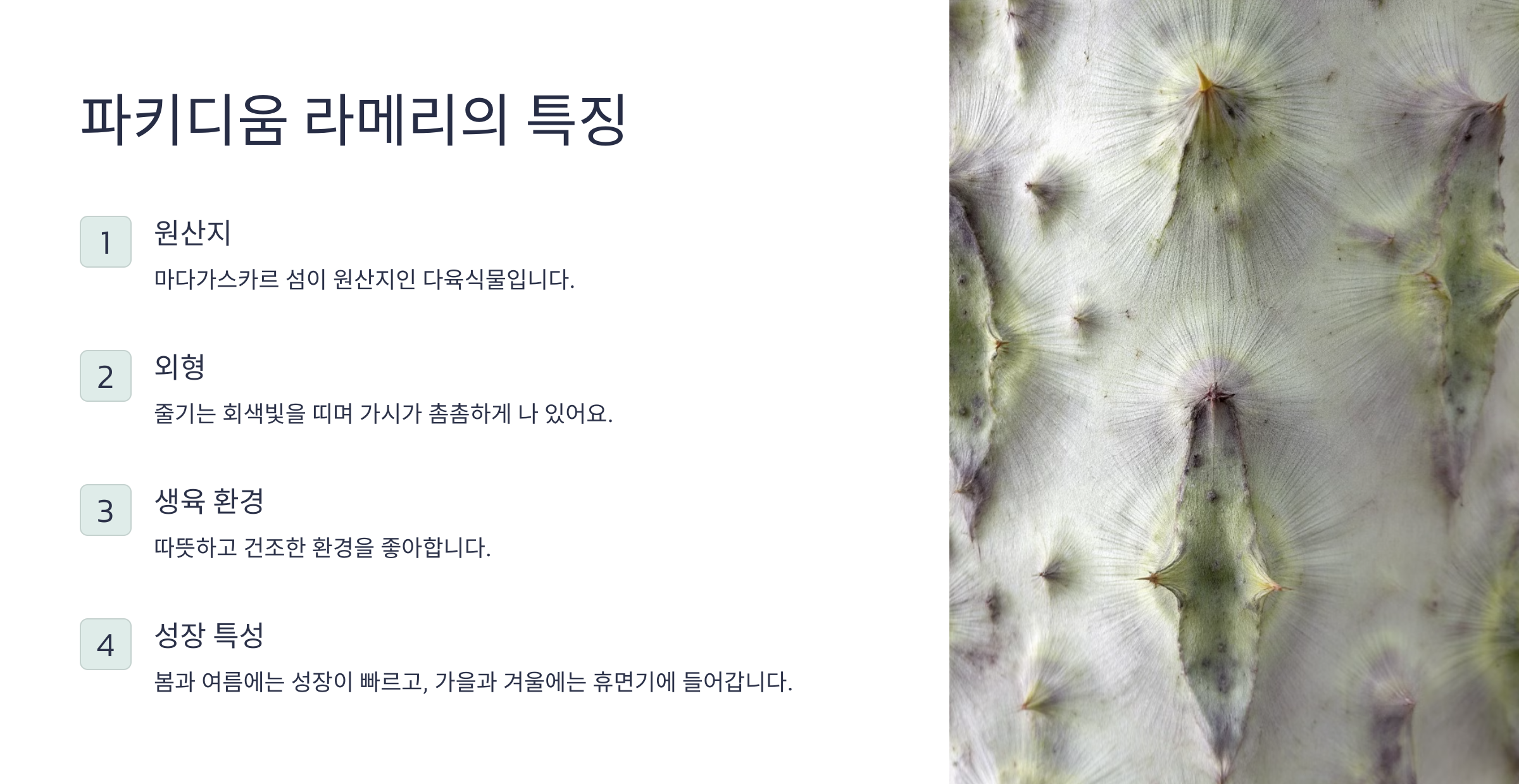 1. 파키디움 라메리란? 특징과 생육 환경